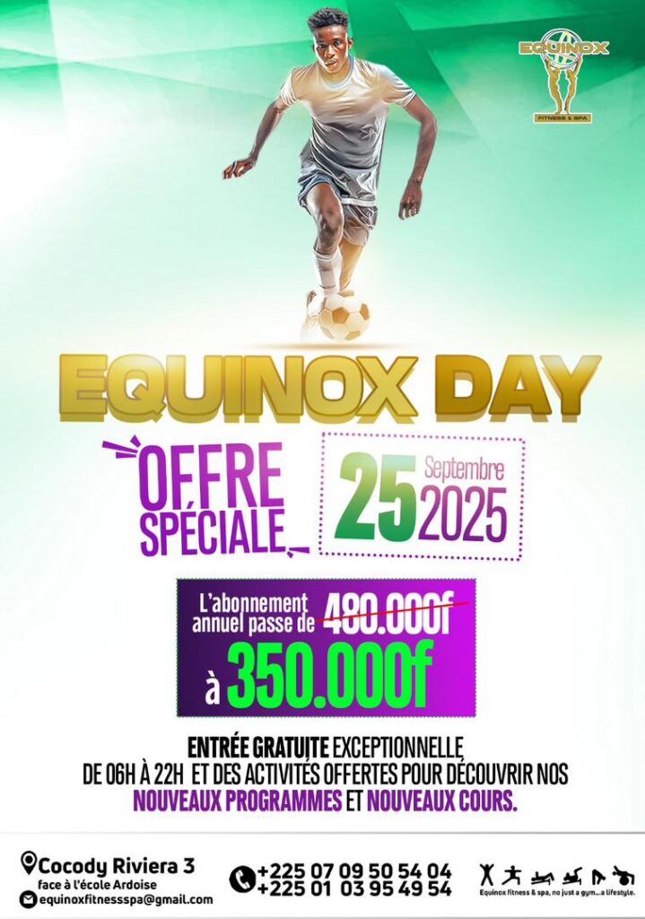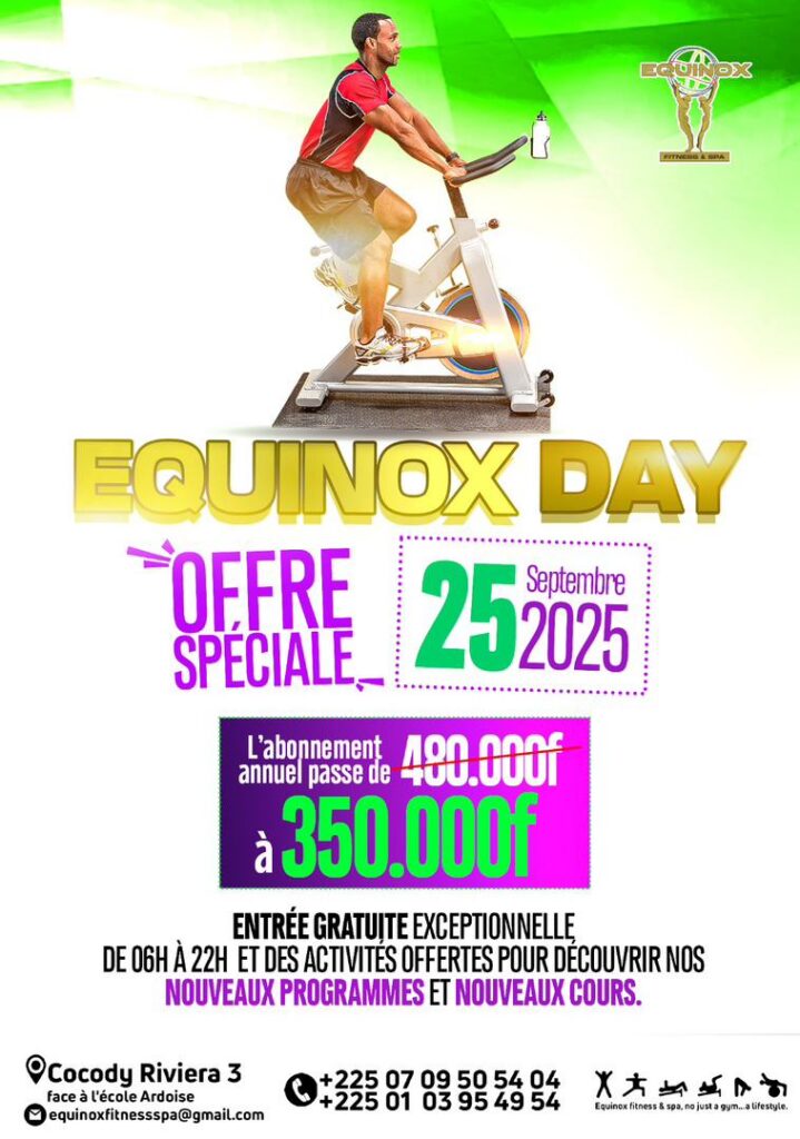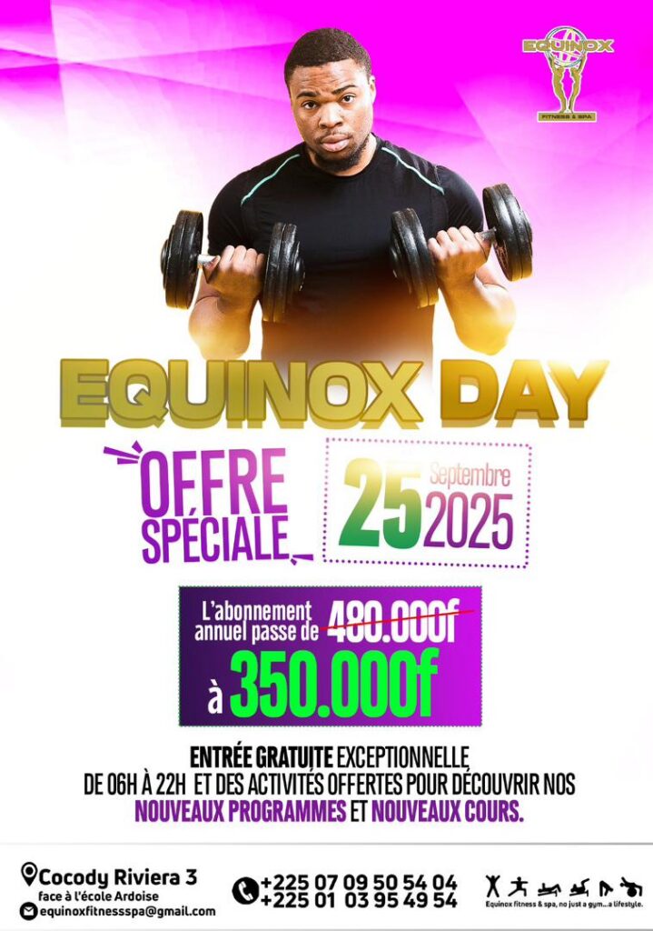 Nous sommes ravis de vous convier à un événement exceptionnel et totalement gratuit qui se tiendra chez Equinox Fitness & Spa le jeudi 25 septembre 2025 , de 6h à 22h .